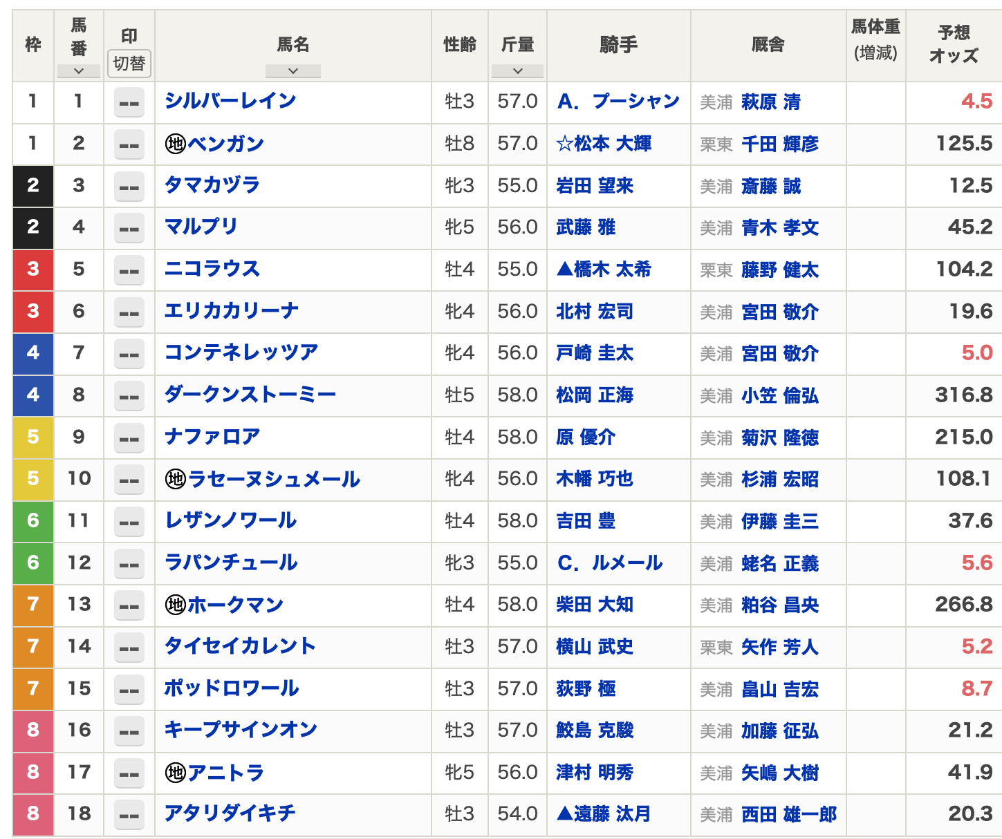 固定しないが、武豊・津村・吉田豊 今回はルメール。蛯名調教師に素質があると見てもらえてるのかな。
