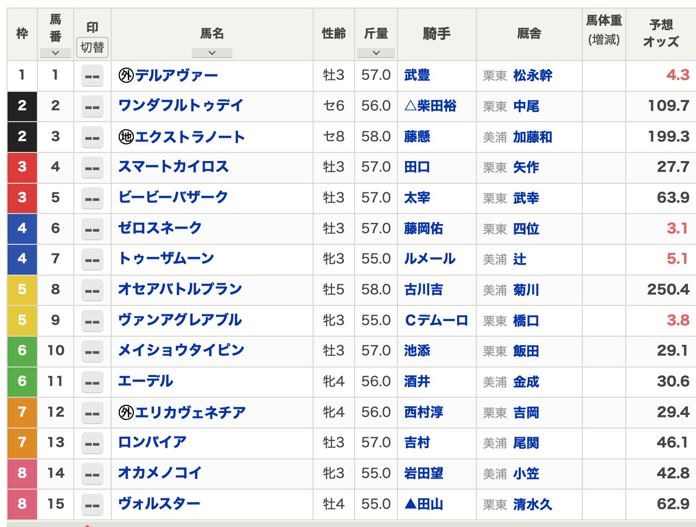 来週の中山まで待つと除外対象になる可能性もありますので、使うなら今週かと。