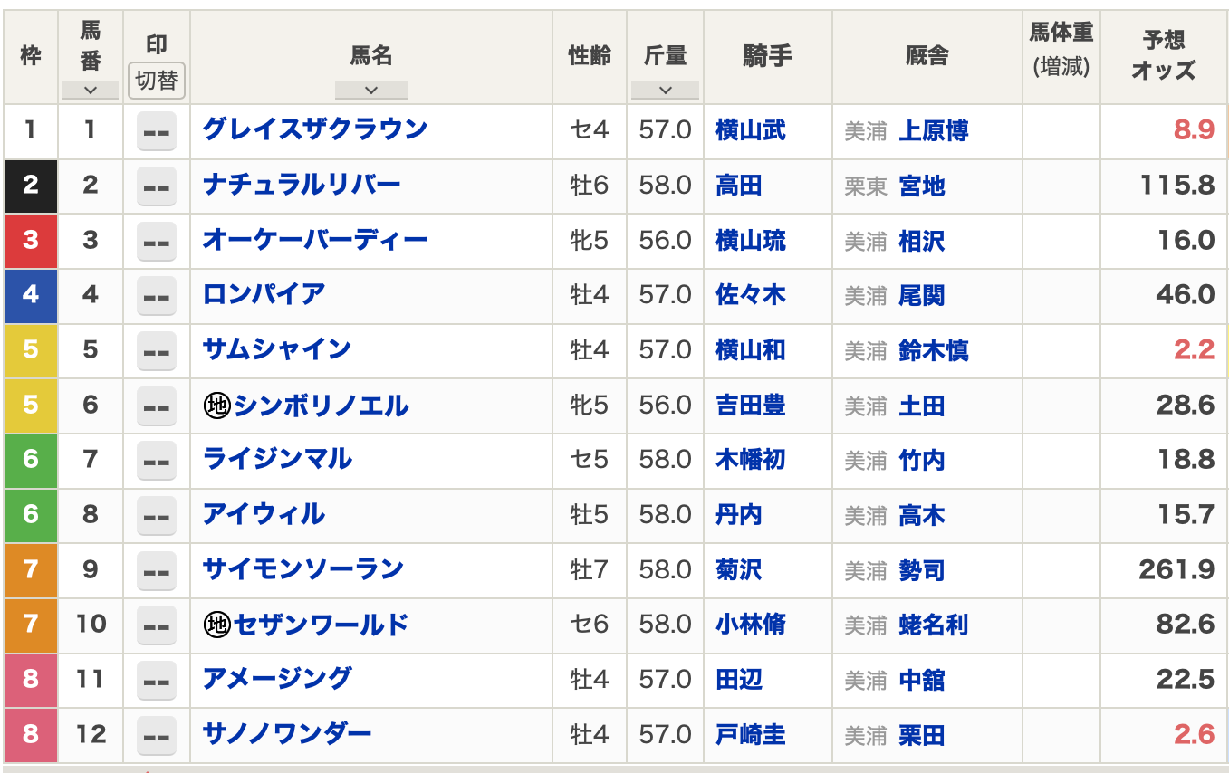 今のところまだこのクラスでは結果が出ていませんが、今回は勝っている中山が舞台。