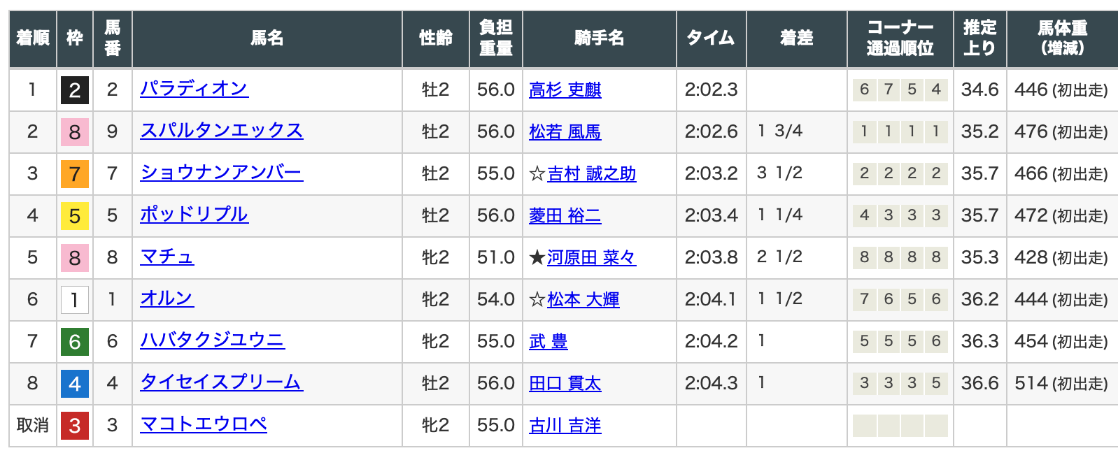 今後の鍵となりますが、素質の高さをはっきり示した価値あるデビュー戦だったと言えるでしょう。